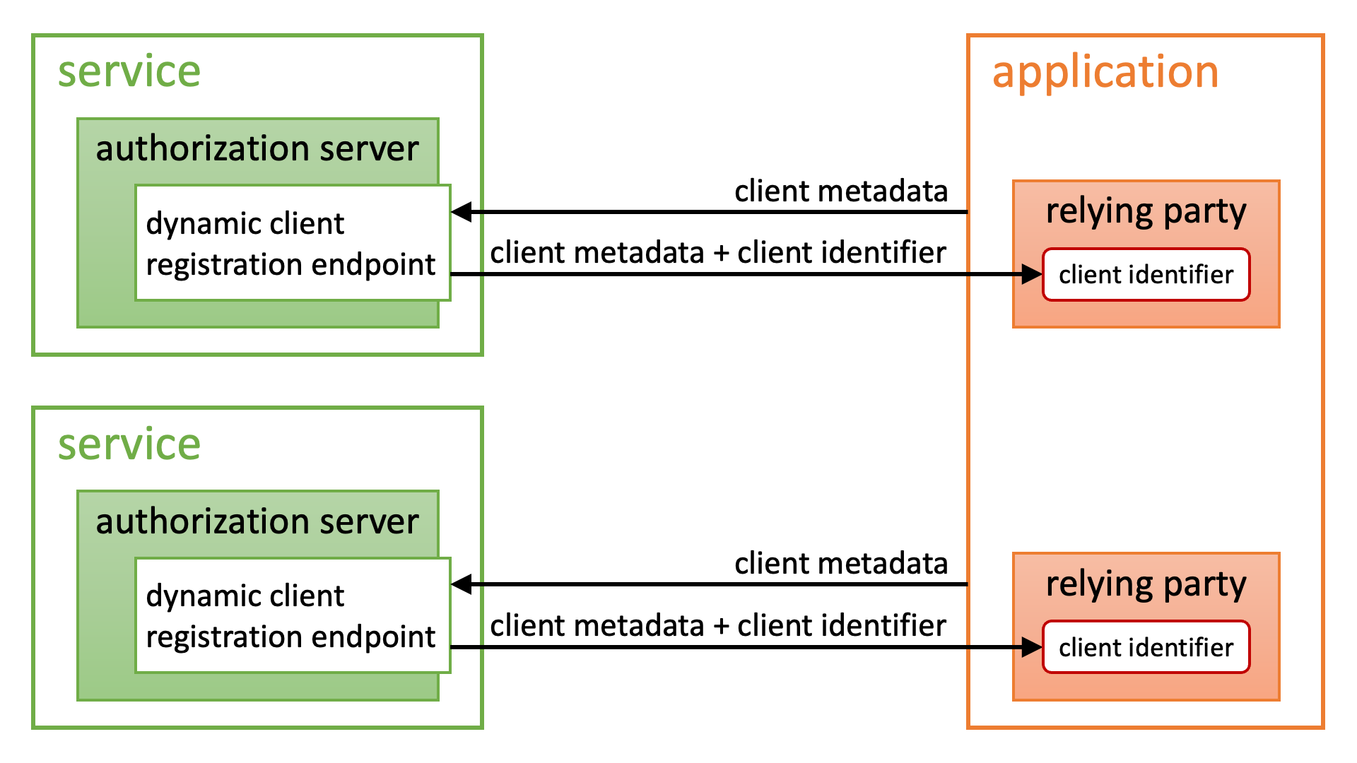 DCR を活用するこの仕組みは機能するものの、認可サーバ毎にクライアント ID を使い分けなければならず、認可サーバの数が増えてくると識別子管理が厄介になってきます。 アプリケーションの立場からすれば、可能であれば一つのクライアント ID を全ての認可サーバで共通して使い回したいところです。