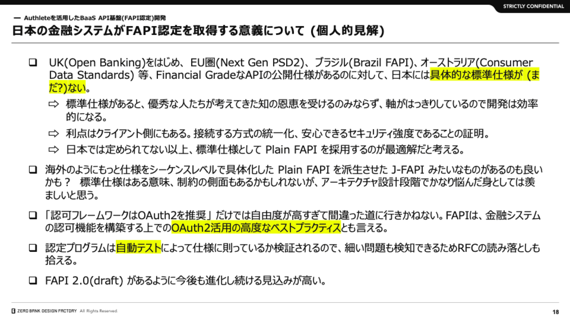 ゼロバンク・デザインファクトリーさまに、Authlete を用いて構築したシステムに関する FAPI 認定取得の事例をお話しいただきました。