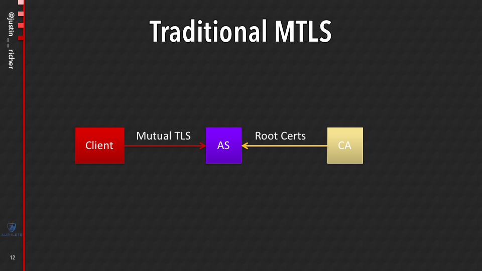 認可サーバーが確認することは、そのクライアント証明書が TLS チャネルで使用されているものであるかどうかです。