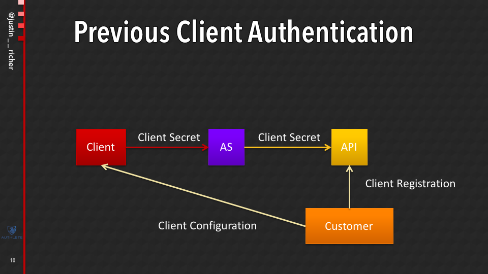まず、以前の Authlete では、次のようにクライアント認証を処理していました。