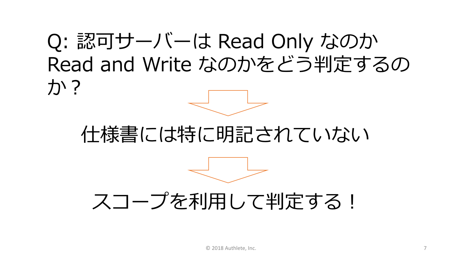 ここにリクエストが飛んでくるわけです。 認可サーバーとしては、このリクエストを Read Only の仕様に従って処理すべきなのか、 あるいは Read and Write の仕様に従って処理すべきなのかを、判定できないといけないわけです。