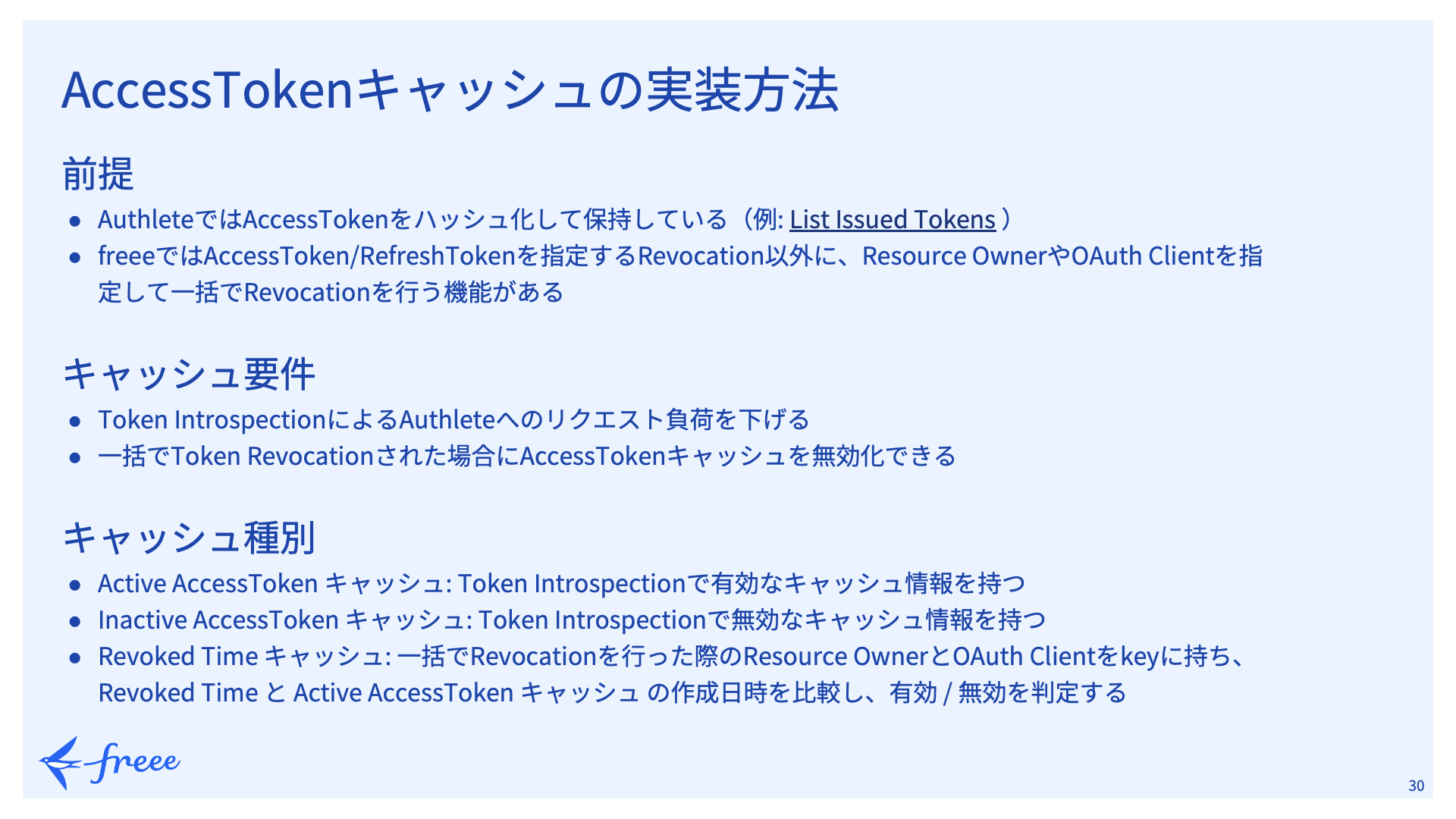 まず、トークンイントロペクションによる Authlete へのリクエスト負荷を下げることが第一です。ただ、一括でトークンリボケーションされた場合でも、ちゃんとアクセストークンのキャッシュを無効化する必要がありました。