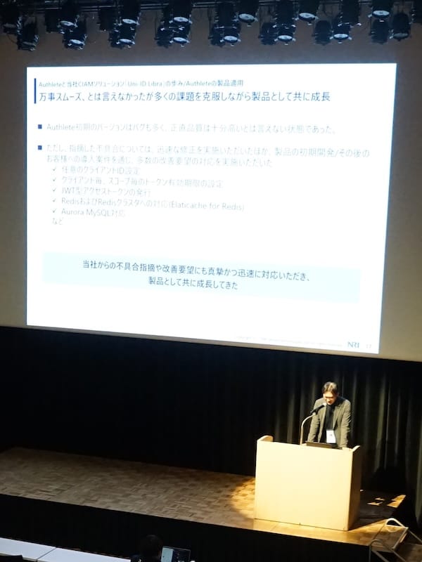 万事がスムーズに行ったわけではありませんでした。Authlete さんの初期のバージョンは不具合も多く、我々の製品開発プロセスの中でかなりバグ出しをさせていただきました。また、実際のお客さまの環境に導入する中で見つかった、さまざまな不具合も直していただきました。そのように不具合はいろいろ出ましたが、指摘項目については迅速に修正していただきました。川崎さんが数時間後に修正パッチを送ってくれることもありました。