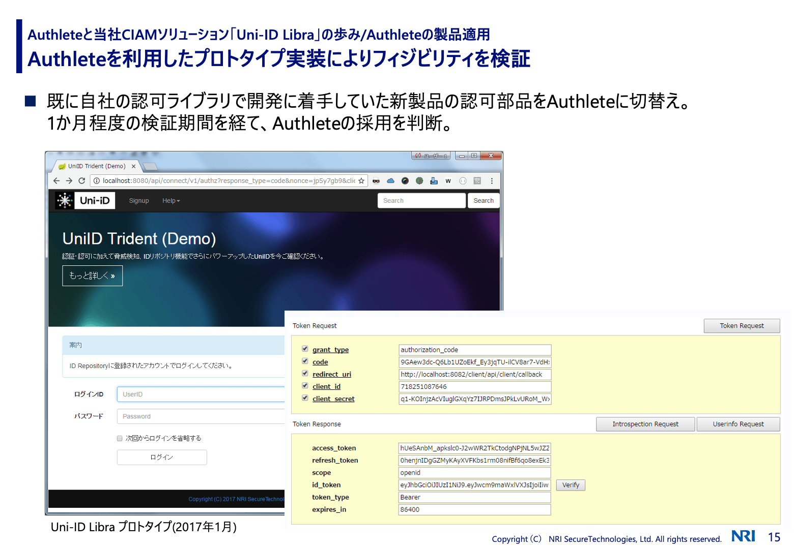 その時点で我々はすでに、自社製の認可ライブラリを用いて新製品(Uni-ID Libra)の開発に着手していました。しかし認可部分を Authlete に切り替えて、1 ヶ月ほど検証し、最終的に Authlete の採用を判断しました。これは当時作っていたプロトタイプです。