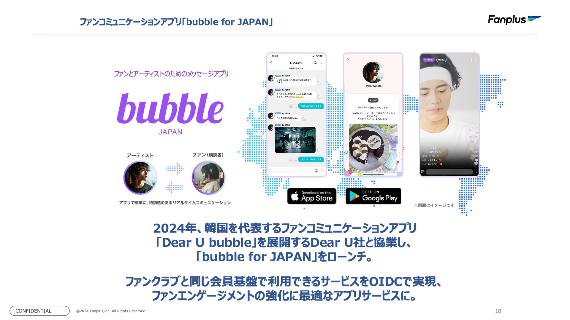 Dear U bubble という、韓国を代表する、アーティストとファンが繋がれるトークアプリがあります。今回韓国の Dear U 社と提携して日本向けに bubble for JAPAN を立ち上げました。ローンチにあたっては Plus member ID を活用したエンゲージメントの強化を視野に入れています。