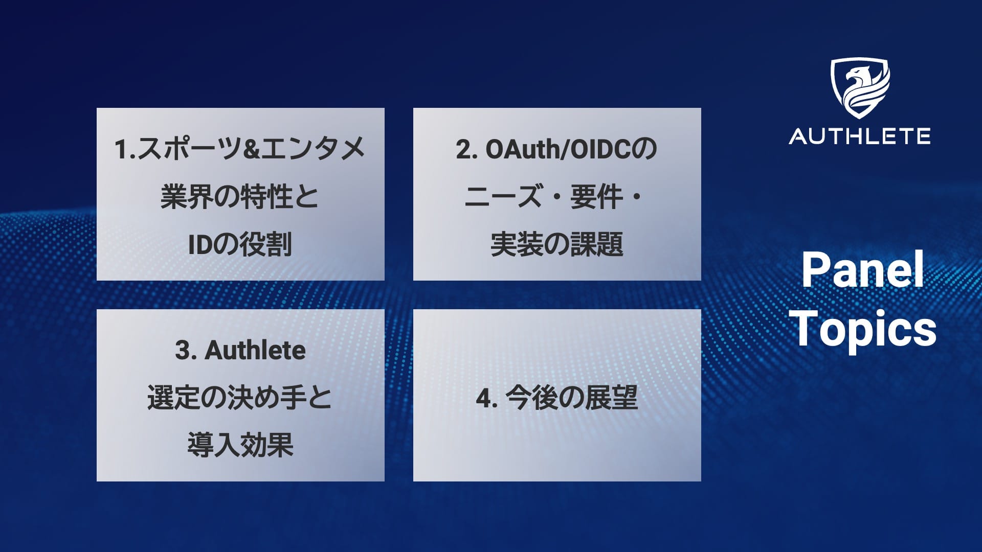 この文字起こしは、2024 年 12 月 11 日に開催された Authlete Customer and Partner Meetup 2024 のパネルディスカッションです。 ファイターズ スポーツ & エンターテイメントさま、Fanplus さま、playground さまに、スポーツ & エンターテインメント特有の要件や OAuth/OIDC 実装のきっかけ、そして Authlete 導入の効果についてお伺いしました。